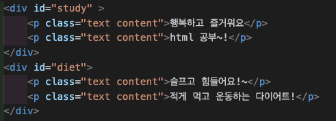 | class | 요소를 그룹별로 묶을 수 있는 식별자 역할 / 1개의 요소에 여러 class를 가질 수 있으며 중복될 수 있다. |