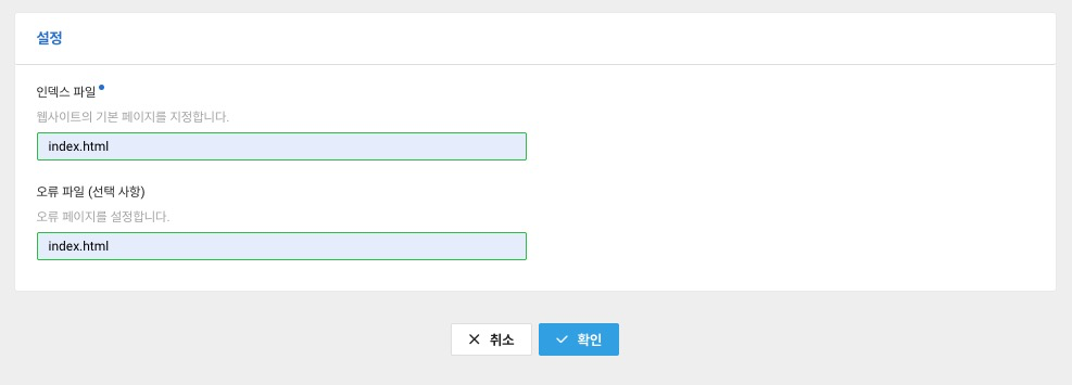 설정 부분에서 인텍스 파일에 index.html 를 넣어주고